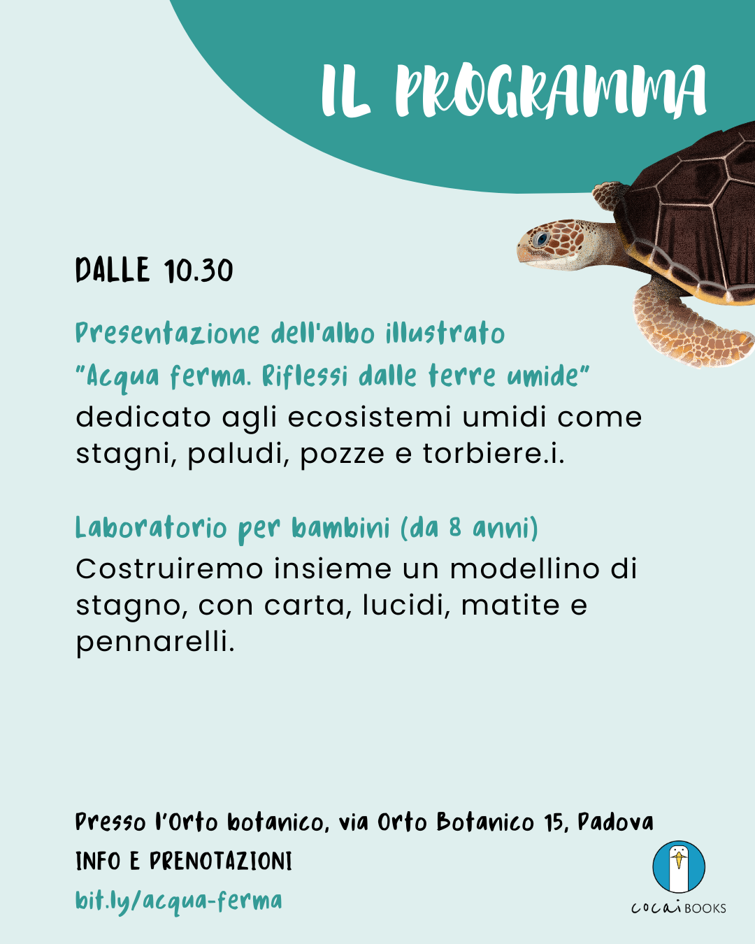 Domenica 19 ottobre vi aspettiamo all' @ortobotanicopd di Padova per un laboratorio per bambini ispirato al n nostro libro "Acqua ferma. Riflessi dalle terre umide". Presentermo il libro, parlando di stagni, pozze e paludi, quindi ogni partecipante potrà costruire il suo modellino personale di stagno! Info e iscrizioni sul sito dell'Orto Botanico.