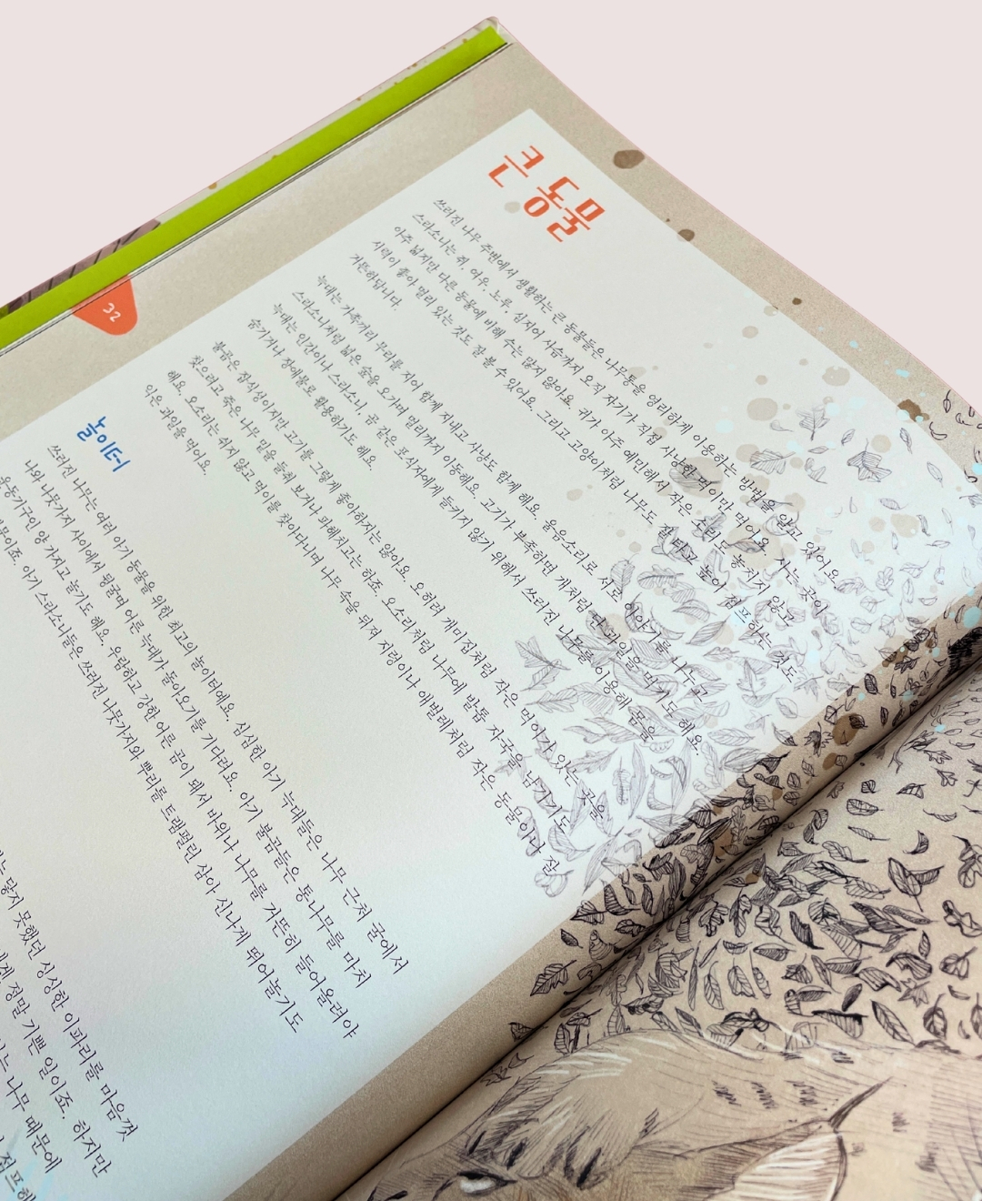 Le illustrazioni e gli elementi del libro sono stati trasformati per permettere ai bambini di esplorare, anche interagendo con il corpo, la natura nascosta e inattesa che si crea dentro e fuori un albero morto. L’ecosistema complesso dell’albero caduto è rappresentato attraverso un gigantesco pezzo di legno intagliato e stampato, attraverso scorci di bosco e lettiera stampati su stoffa: un lavoro e un risultato per noi molto emozionanti!