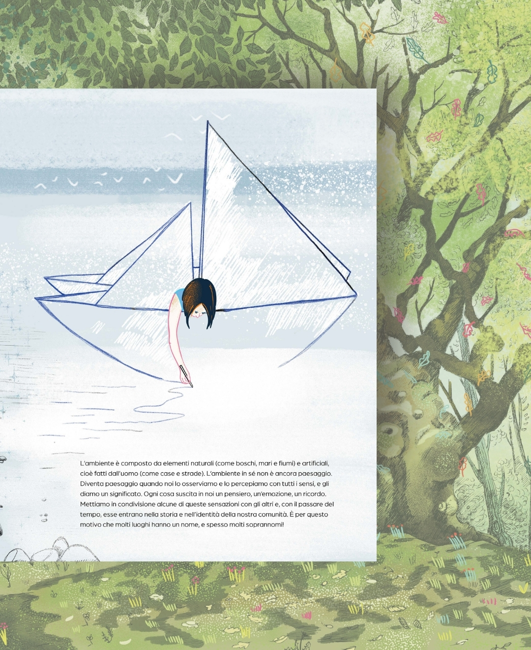 è un albo dedicato al paesaggio e alla vivibilità: il luogo in cui viviamo ci condiziona, e contribuisce a renderci quello che siamo. Noi, a nostra volta, possiamo modificarlo e cambiarlo, e soprattutto renderlo migliore.