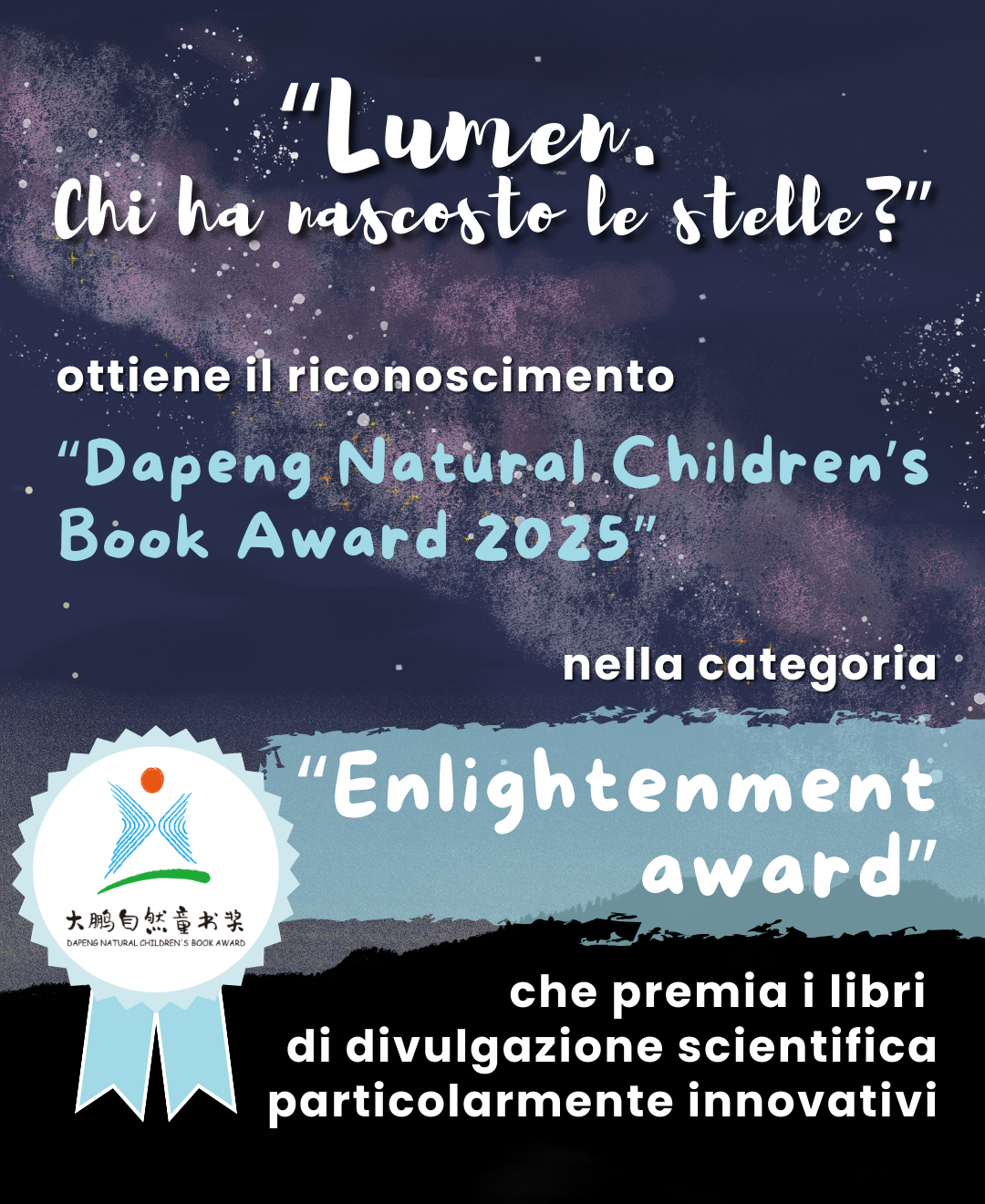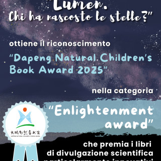 “Lumen. Chi ha nascosto le stelle?” ottiene il riconoscimento “Dapeng Natural Children’s Book Award 2025” nella categoria “Enlightenment award” che premia i libri di divulgazione scientifica particolarmente innovativi.
